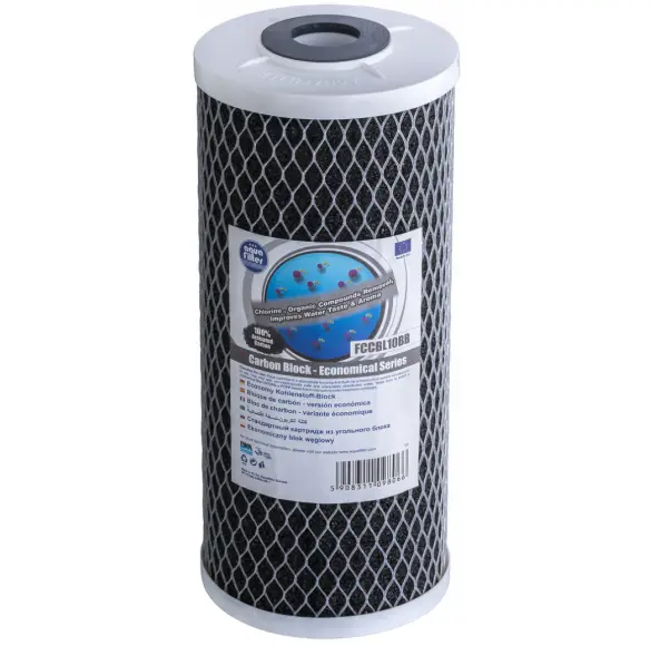 Картридж вугільний Aquafilter FCCBL10BB складається зі спеціально спеченого активованого вугілля, який видаляє з води до 99% вільного хлору та інші органічні забруднення (покращують смак і запах води), а також до 85% хлоровторичних пестицидів, багатоароматичних сполук, фенолу, бензолу. Покращує аромат та смак фільтрованої води. Підходить до всіх корпусів для фільтра розміру 10 Big Blue.