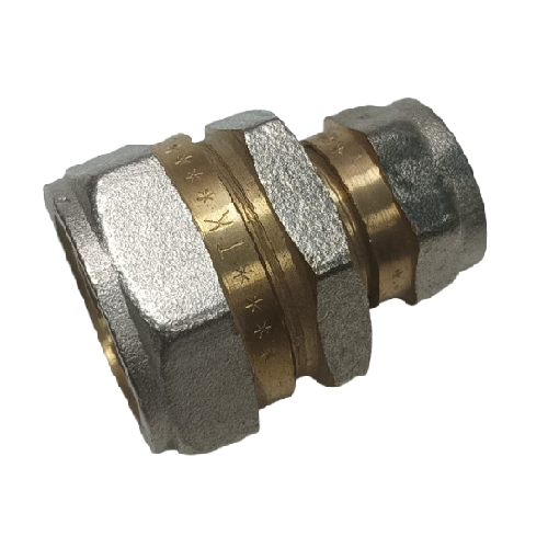 Муфта обтискна редукційна 26 х 16 мм виготовлена з нікельованої латуні, що вирізняється високою міцністю, стійкістю до корозії та довговічністю. Призначена для з’єднання металополімерних труб різного діаметра в системах холодного й гарячого водопостачання та опалення. Забезпечує надійне, герметичне та розбірне з’єднання — зручне для монтажу та обслуговування.