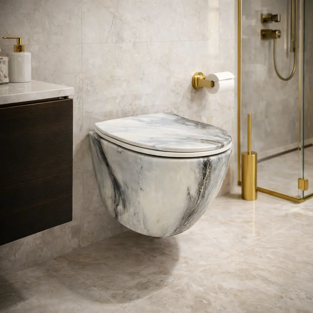 Підвісний унітаз VBI VULCANO GRANIT – стильне та сучасне рішення для ванної кімнати з елегантним мармуровим відтінком. Виготовлений із високоякісної кераміки, стійкий до корозії та легко очищується. Система Rimless забезпечує ефективний змив, а Soft Close робить закриття кришки плавним і безшумним. Прихований монтаж економить місце та полегшує прибирання, а глянцева поверхня додає інтер’єру світла та простору. М’якота та елегантність мармурового кольору створюють відчуття розкоші та гармонії у вашій ванній кімнаті.