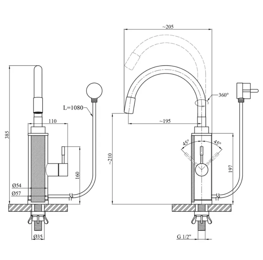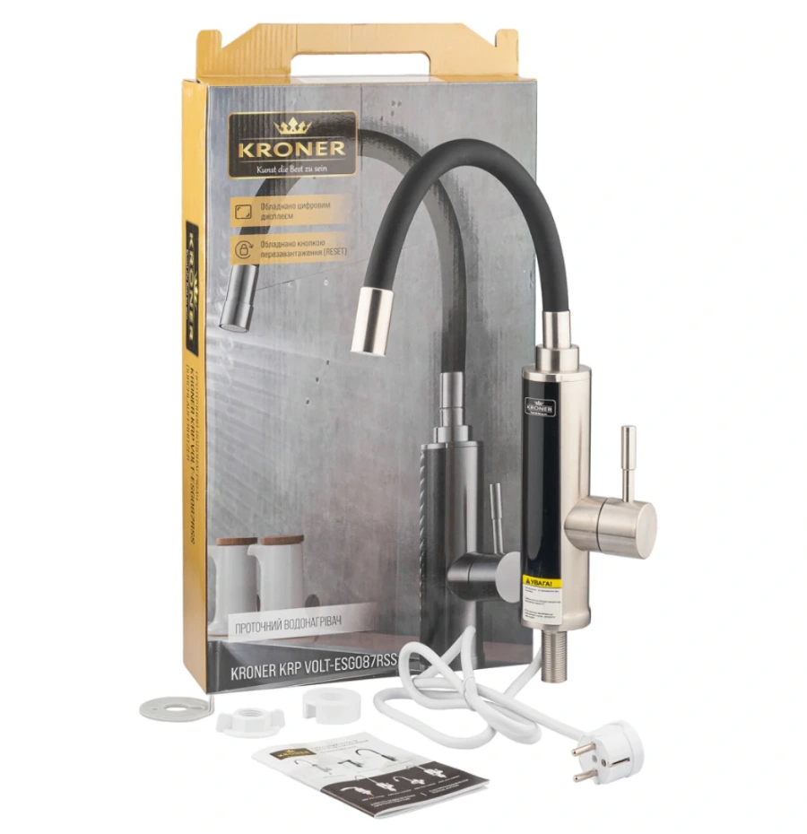 Проточний водонагрівач Kroner KRM Volt - CW090 з дисплеємПроточний водонагрівач SDR-G8TR-Black гнучкий вилив