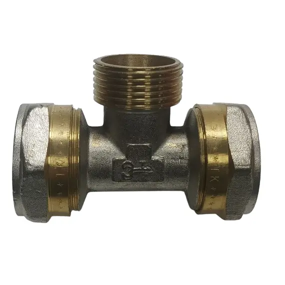Трійник обтискний зовнішній 32 х 1'' х 32 мм виготовлений з нікельованої латуні, що забезпечує високу міцність, стійкість до корозії та довгий термін служби. Призначений для розгалуження металополімерних труб із підключенням різьбового елемента 1'' у системах холодного й гарячого водопостачання та опалення. Забезпечує надійне, герметичне та розбірне з’єднання — зручне під час монтажу й обслуговування.