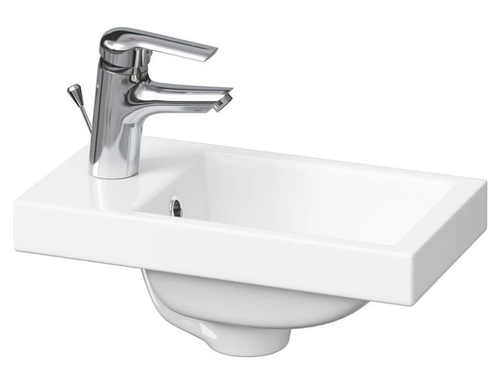 Умивальник меблевий COMO 40 з отвором для змішувача — компактний і стильний умивальник, який ідеально підходить для невеликих ванних кімнат. Прямокутна форма та ширина 40 см дозволяють зручно встановити його на тумбу або меблі для ванної, економлячи простір і створюючи акуратний сучасний вигляд. Виготовлений із якісного сантехнічного фаянсу з гладкою глянцевою поверхнею, умивальник стійкий до подряпин, легко очищується та довго зберігає білосніжний колір. Модель оснащена отвором під змішувач і переливом, що забезпечує комфортне та безпечне користування у повсякденному житті.