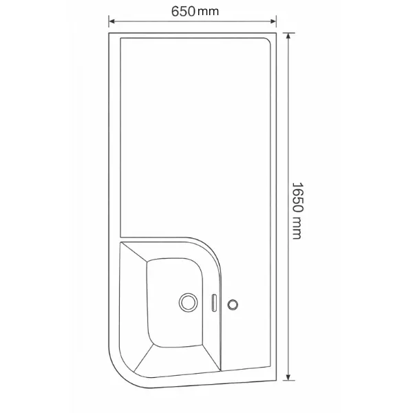 Завдяки розміру 116x65 см умивальник забезпечує достатню площу для комфортного користування, а також дозволяє розмістити пральну машину під ним без додаткового монтажу.
