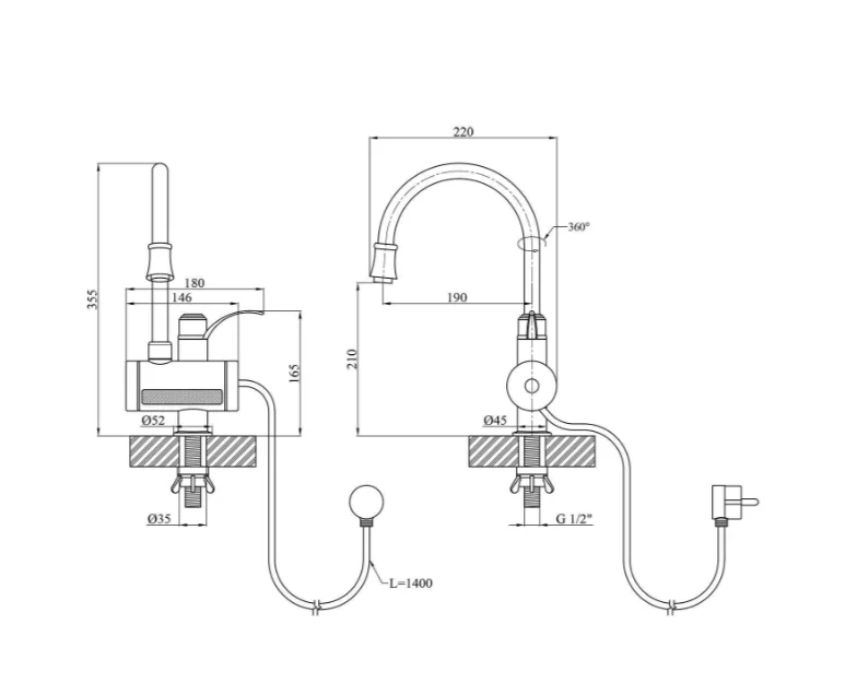 Проточний водонагрівач Kroner KRP Volt - ESG087RSSПроточний водонагрівач SDR-G8TR-Black гнучкий вилив