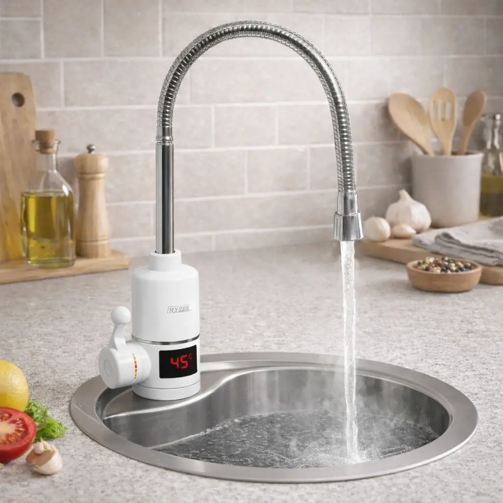 Проточний водонагрівач WEZER SDR-F05T — це компактне та ефективне рішення для кухні, яке забезпечує миттєвий нагрів води без потреби в бойлері чи накопичувальному баку. Оснащений зручним цифровим дисплеєм, він дозволяє точно контролювати температуру води в реальному часі, що робить користування максимально комфортним і безпечним. Завдяки сучасному дизайну та простому монтажу пристрій легко інтегрується у будь-який кухонний інтер’єр, а якісні матеріали гарантують довговічність і стабільну роботу навіть при інтенсивному використанні. Ідеально підходить для дому, дачі або офісу, де важлива швидкість, економія електроенергії та зручність у щоденному користуванні.