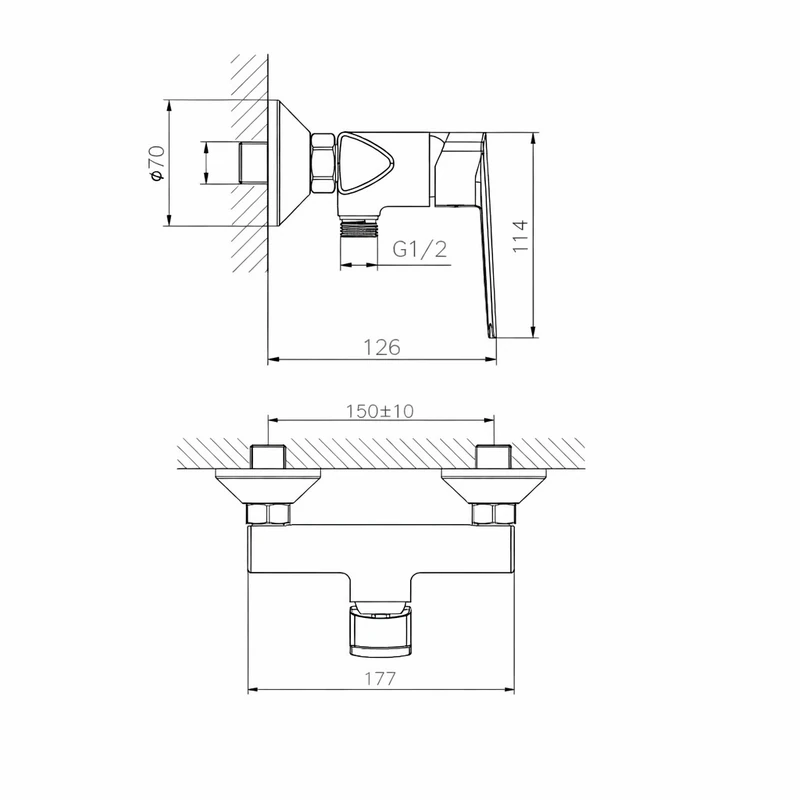 Змішувач призначений для душу і не має гусака, завдяки чому виглядає компактно та акуратно. Це ідеальне рішення для душових кабін або сучасних ванних кімнат, де важлива економія простору.