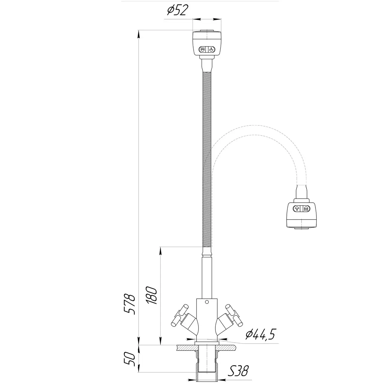 Головна особливість цієї моделі — гнучкий гусак, який дозволяє легко направляти струмінь води у потрібну сторону. Такий змішувач для кухні значно спрощує миття великого посуду, овочів або очищення самої мийки. Гнучкий вилив робить кухонний змішувач більш універсальним і зручним у використанні.