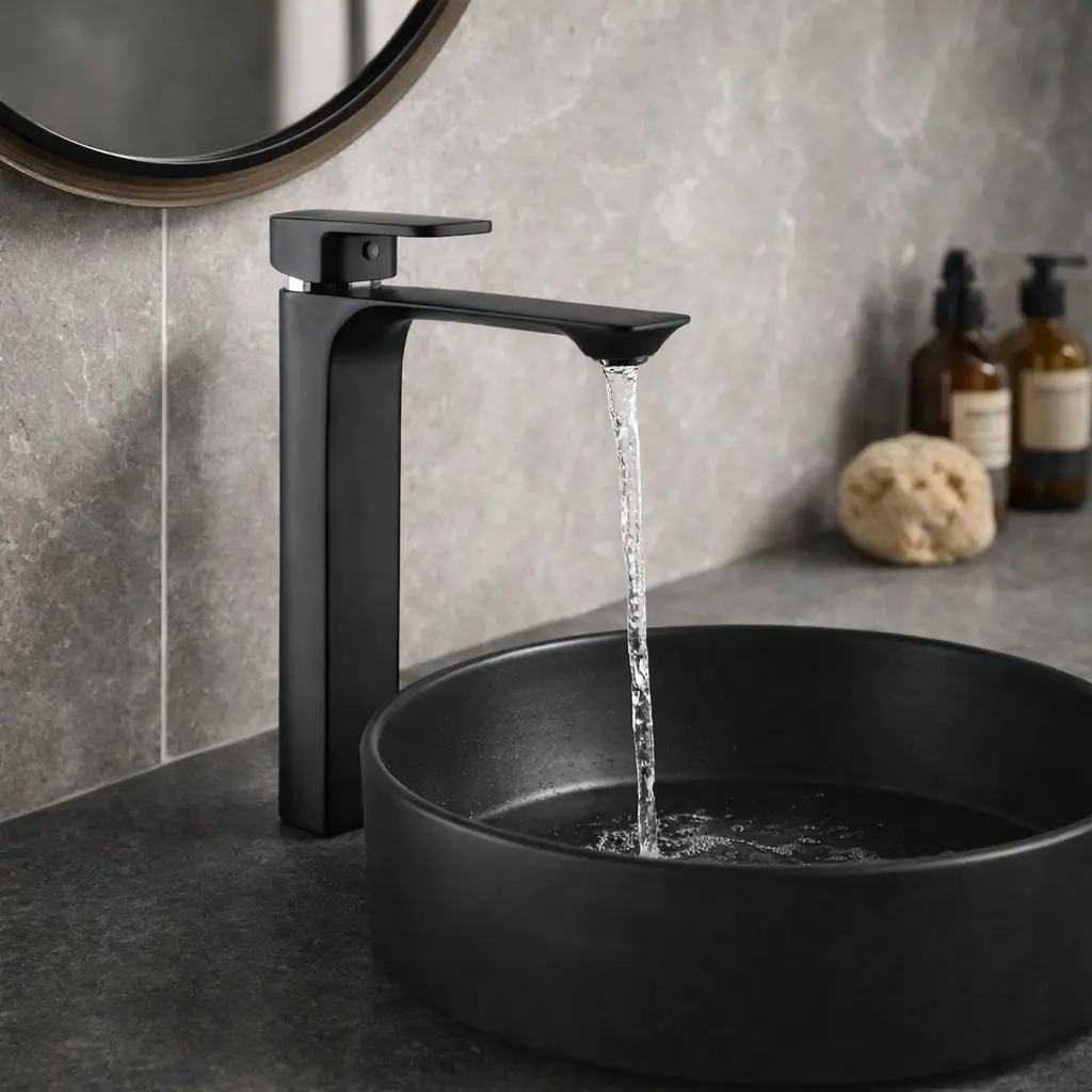 Завдяки збільшеній висоті змішувач ідеально підходить для накладного умивальника, дозволяючи зручно мити руки та користуватись раковиною без обмежень. Така конструкція добре виглядає у сучасних інтер’єрах і додає ванній кімнаті акуратного вигляду.