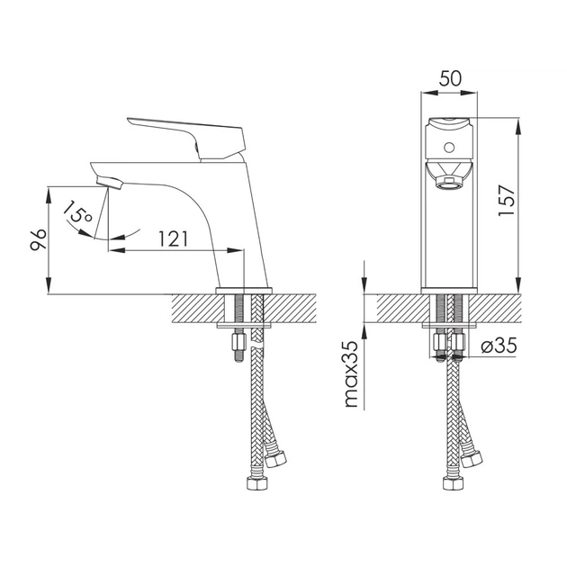 Змішувач HK Ø35 для раковини литий на гайці Aquatica HK-1A130CЗмішувач для умивальника Globus Lux Ontario GLO-0101 нержавіюча сталь