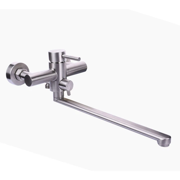 Змішувач для ванни Globus Lux ALPEN SUS-208 - це сучасна модель із довгим поворотним гусаком, виготовлена з високоякісної нержавіючої сталі SUS, що забезпечує виняткову міцність, стійкість до корозії та довгий термін служби. Стриманий мінімалістичний дизайн та матова поверхня ідеально підходять для ванних кімнат у сучасному стилі, а зручний одноважільний механізм дозволяє легко регулювати температуру та напір води. У комплект входить ручна душова лійка з гнутим шлангом і настінним тримачем, що забезпечує додатковий комфорт у використанні. Завдяки надійній конструкції та якісним матеріалам, Globus Lux ALPEN SUS-208 стане практичним та довговічним рішенням для щоденного користування.