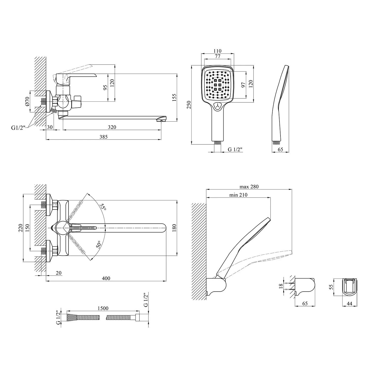 Змішувач; ексцентрики з відбивачами; шланг; лійка; тримач для лійки