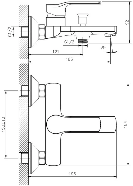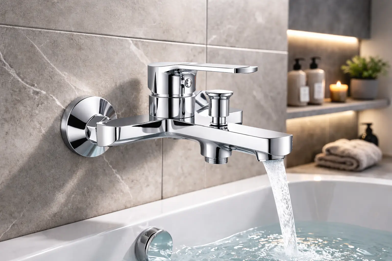Настінний монтаж дозволяє зручно встановити змішувач у стандартну систему підключення без додаткових переробок. Це універсальне рішення для більшості ванних кімнат.