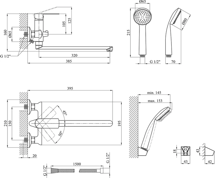 Змішувач; ексцентрики з відбивачами; шланг; лійка; тримач для лійки