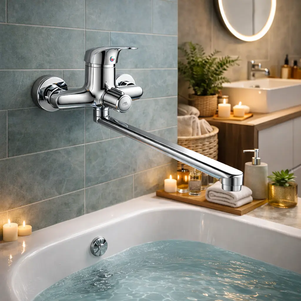 Змішувач ONE для ванни з довгим носом FERRO — це практичне та надійне рішення для сучасної ванної кімнати, яке поєднує стильний дизайн і високу функціональність. Завдяки довгому поворотному виливу він зручний у використанні як для наповнення ванни, так і для обслуговування умивальника поруч, що робить його універсальним вибором для більшості санвузлів. Корпус виготовлений із якісного металу з хромованим покриттям, стійким до корозії, подряпин і втрати блиску, що забезпечує тривалий термін служби та збереження привабливого вигляду. Одноважільне керування дозволяє легко та точно регулювати температуру і напір води, а надійний картридж гарантує плавну роботу без протікань. Змішувач FERRO ONE стане оптимальним вибором для тих, хто цінує комфорт, довговічність і сучасну естетику у ванній кімнаті.